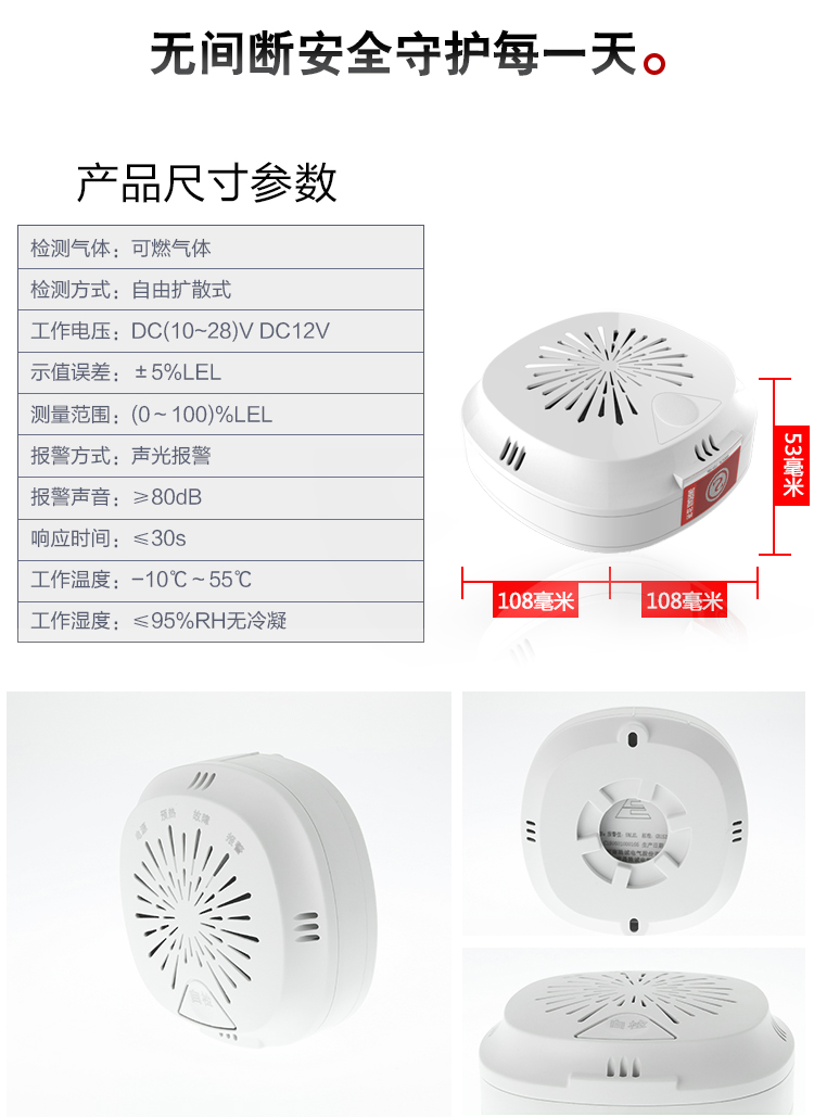 | 報警聲音 | ≥80dB | 響應時間 | ≤30s |